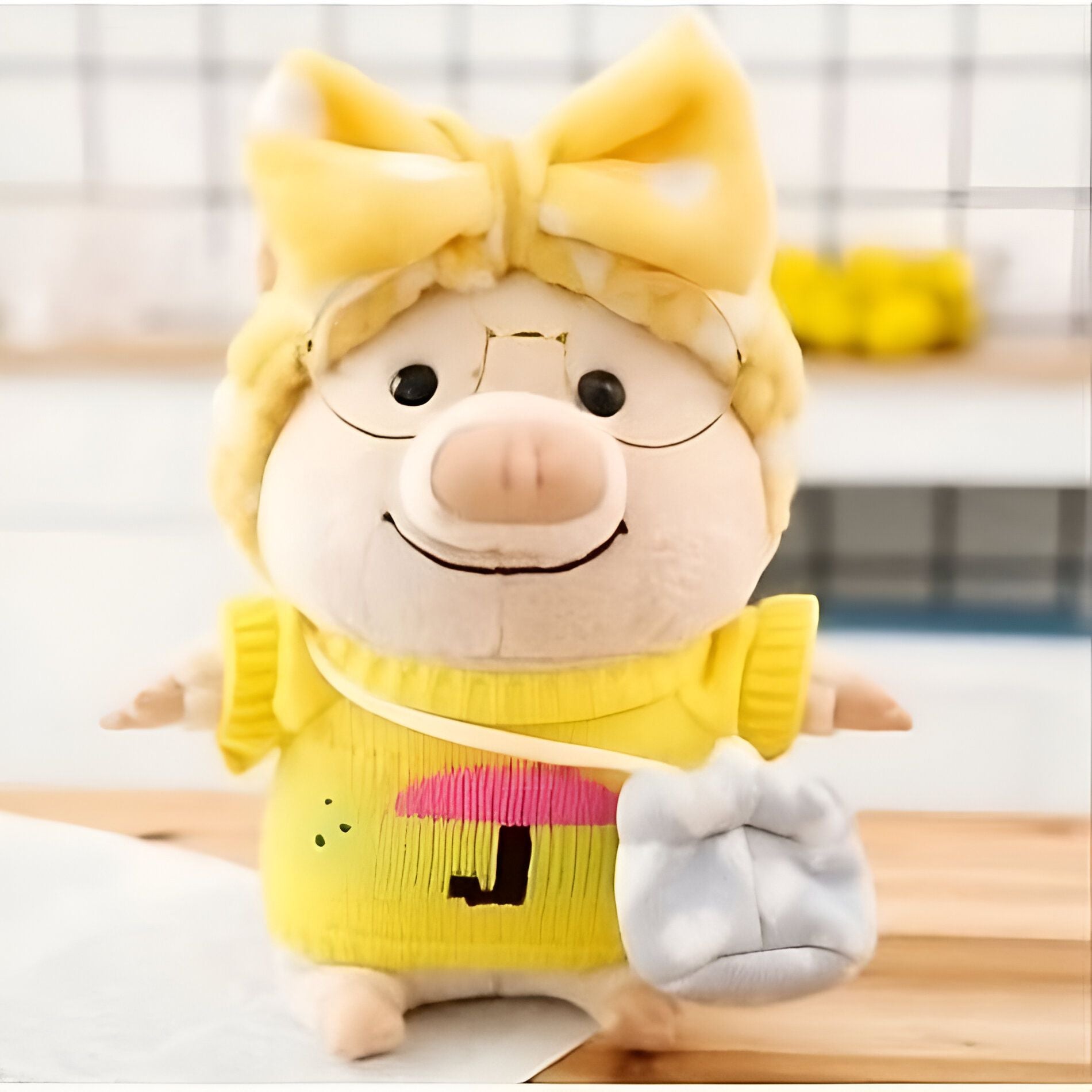 Ce cochon jaune en peluche, orné d’un pull distinctif et d’un parapluie, offre un compagnon d’aventure idéal. Son expression joyeuse et sa texture douce invitent aux câlins et stimulent l’imagination pour des jeux créatifs.