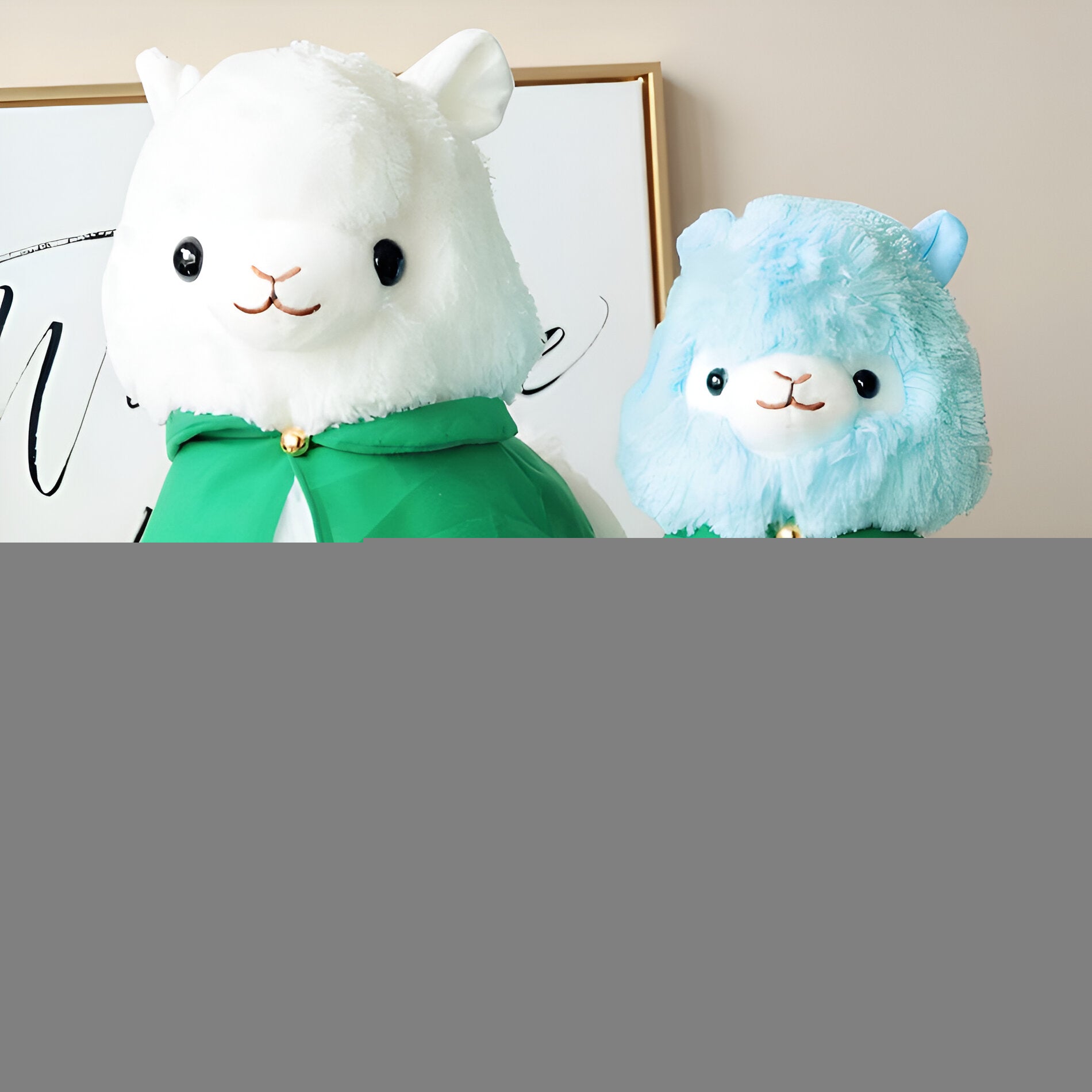 Peluche de lama blanc portant un col vert.