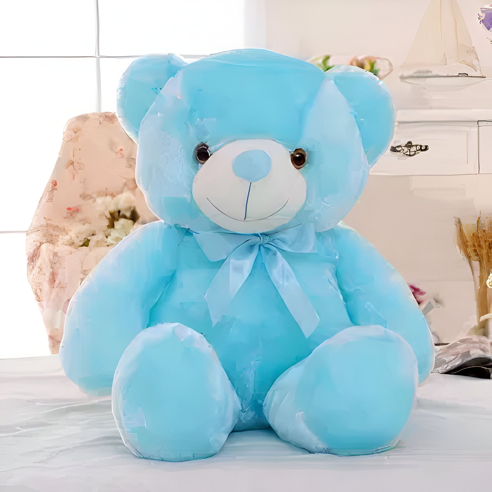 Découvrez cet adorable ours bleu lumineux, un compagnon spécialement conçu pour offrir tendresse et sérénité. Sa douce lumière diffuse une atmosphère apaisante, contribuant à des nuits paisibles pour les plus jeunes.