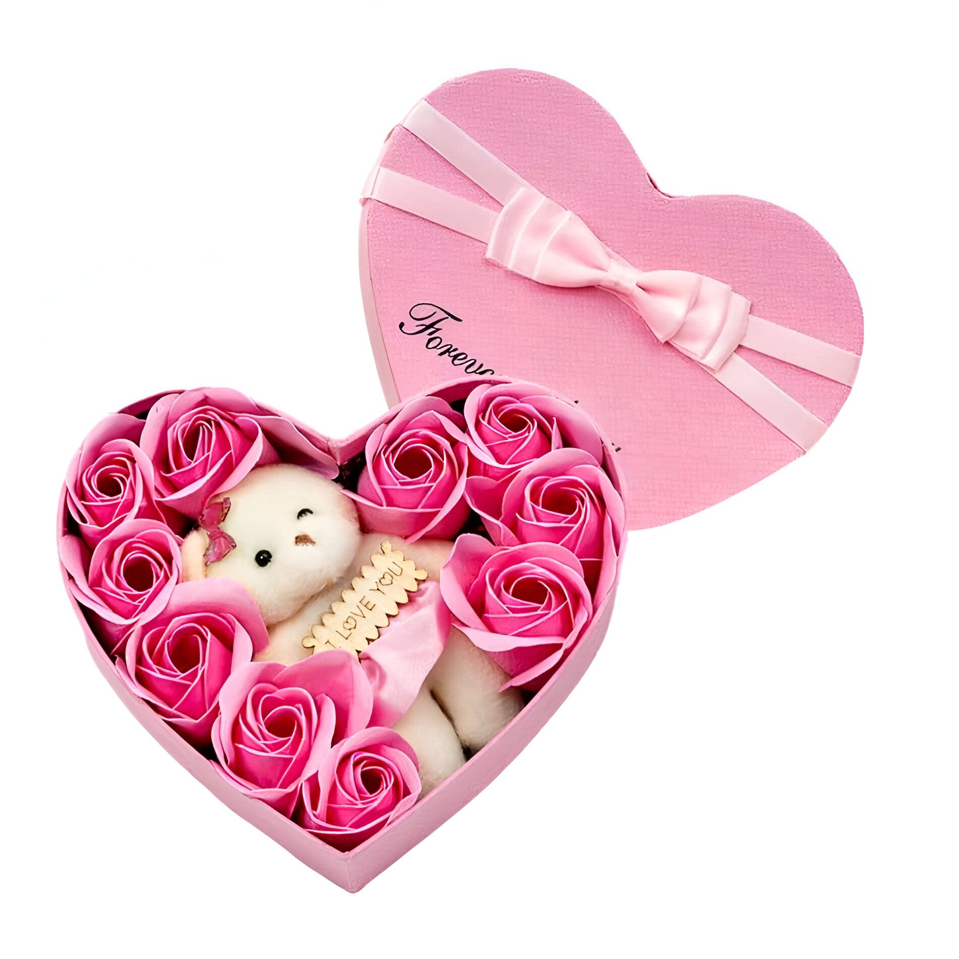 Peluche Ours Cœur & Roses Savon Cadeau Romantique